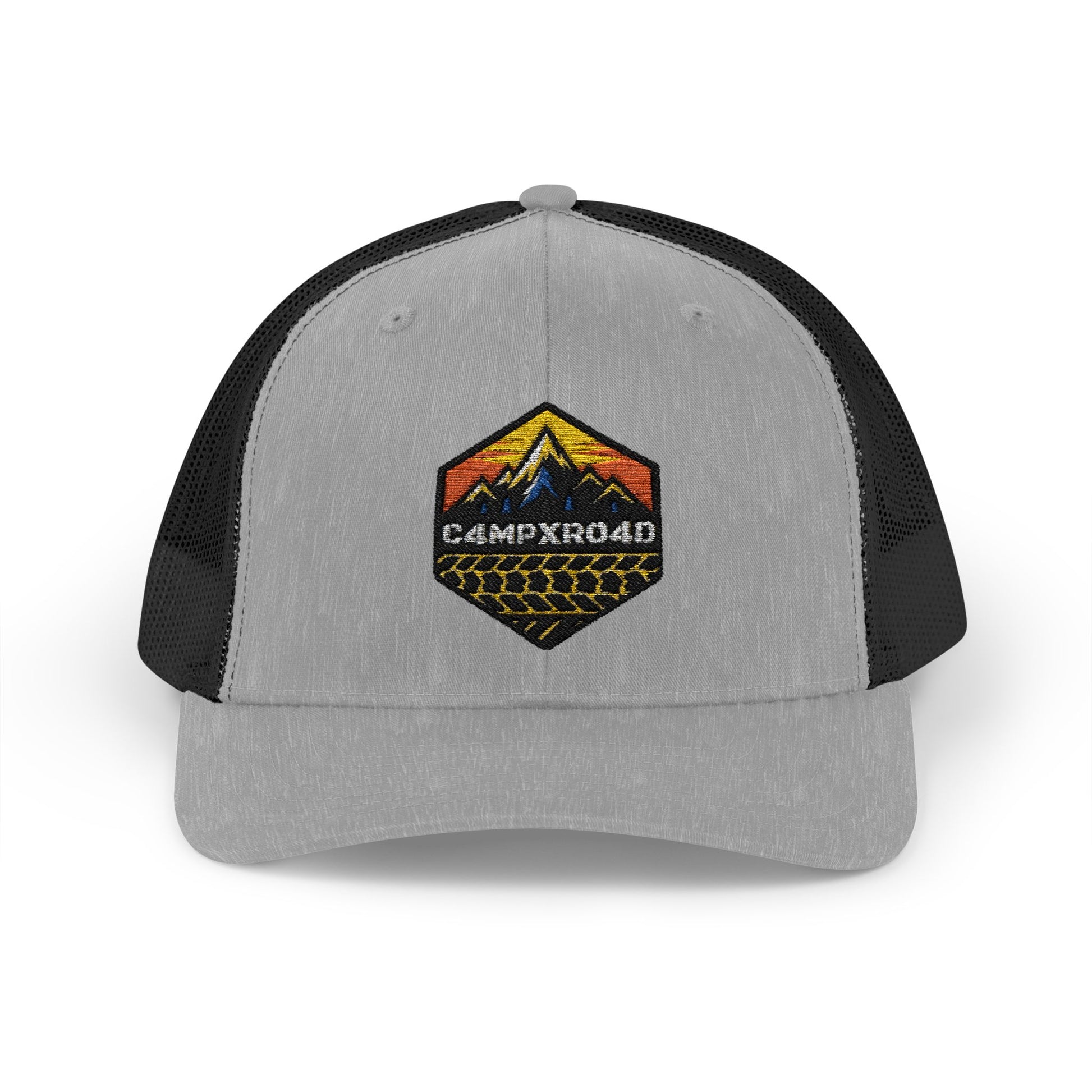 C4MPXRO4D Hexa Shield Camper Badge Cap | Trucker Snapback Mesh Hat