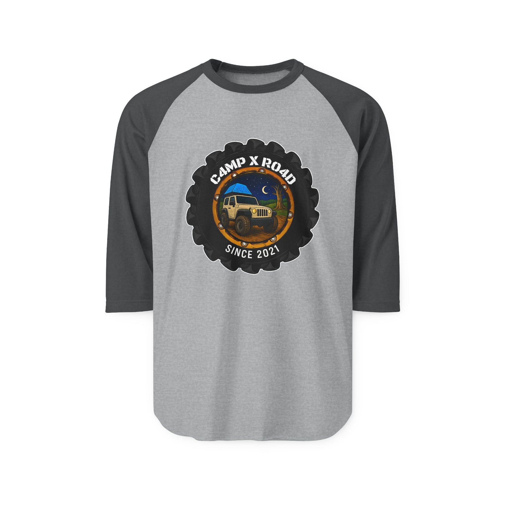 C4MPXRO4D Camper Badge Raglan Shirt | Gaming Code Baseball Tee