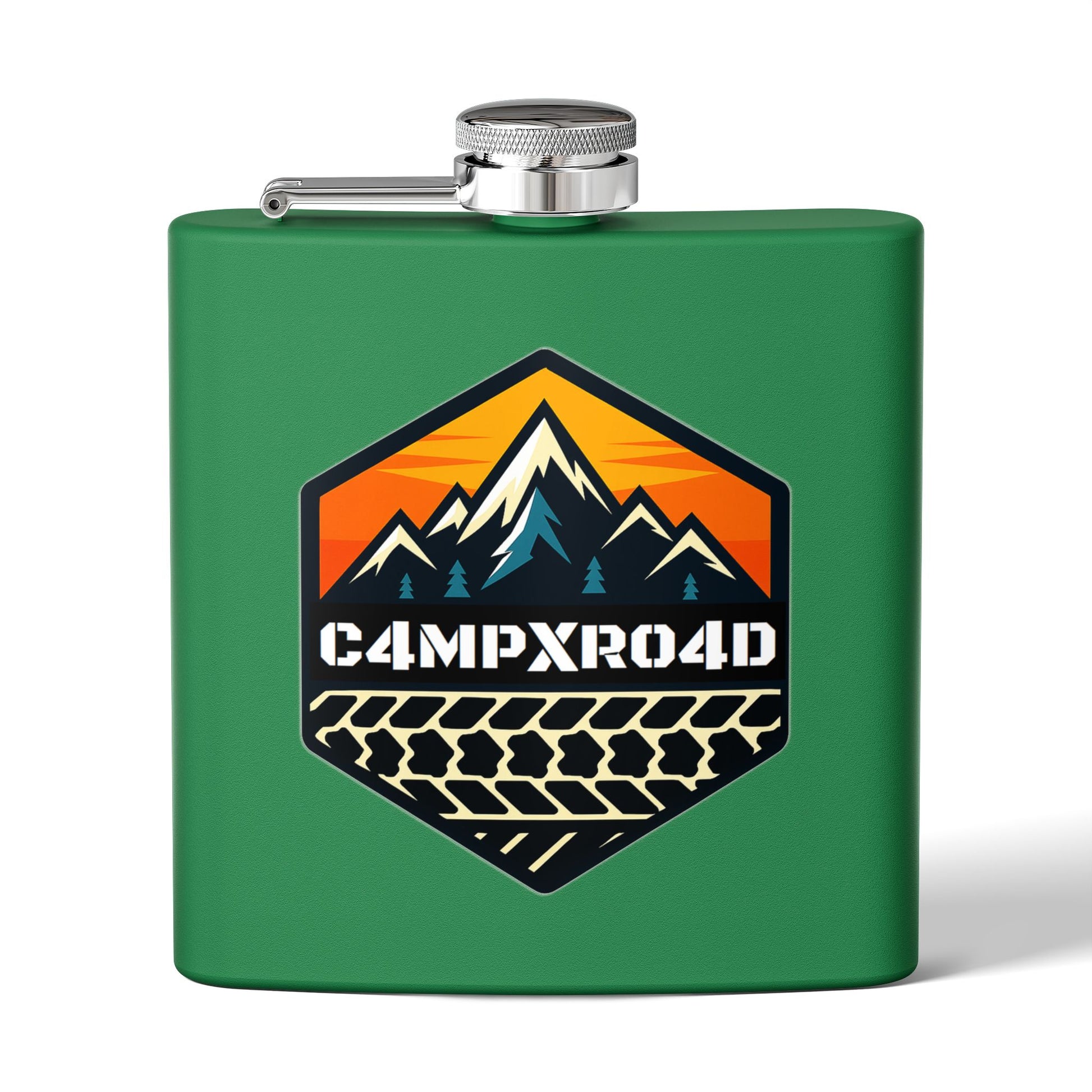 C4MPXRO4D Hexa Shield Camper Badge Flask