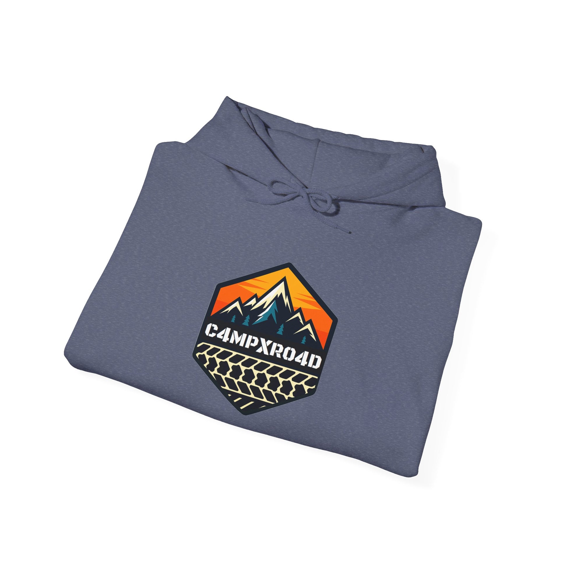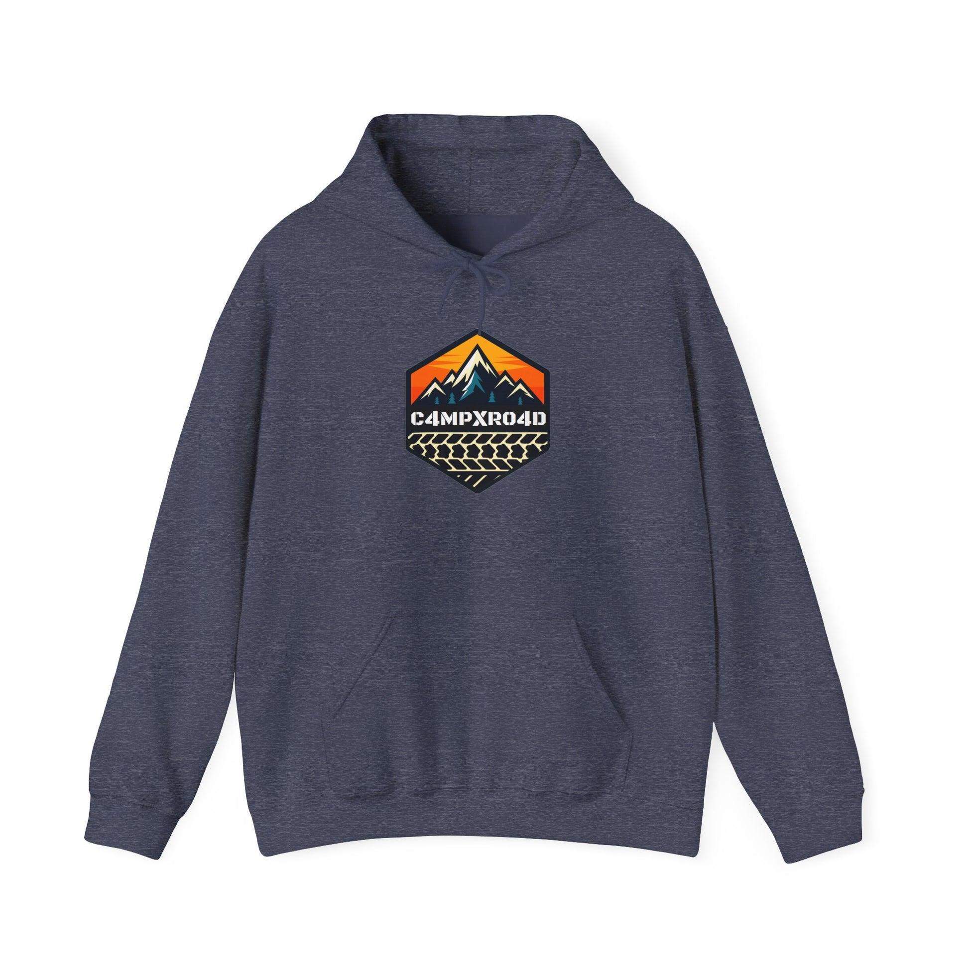 C4MPXRO4D Hexa Shield Camper Badge Hoodie | Black streetwear graphic sweatshirt