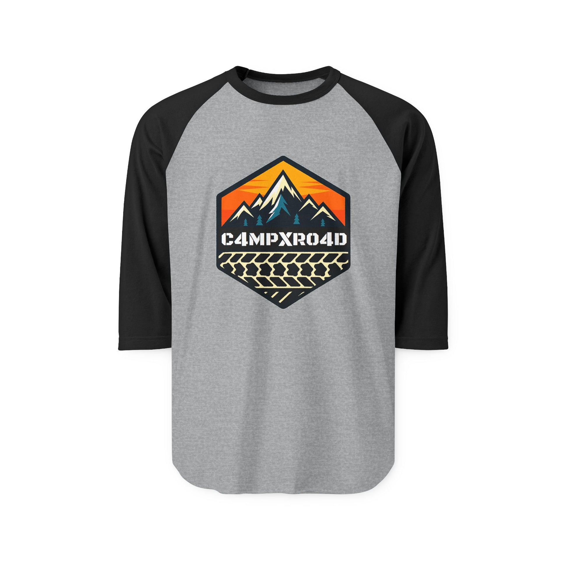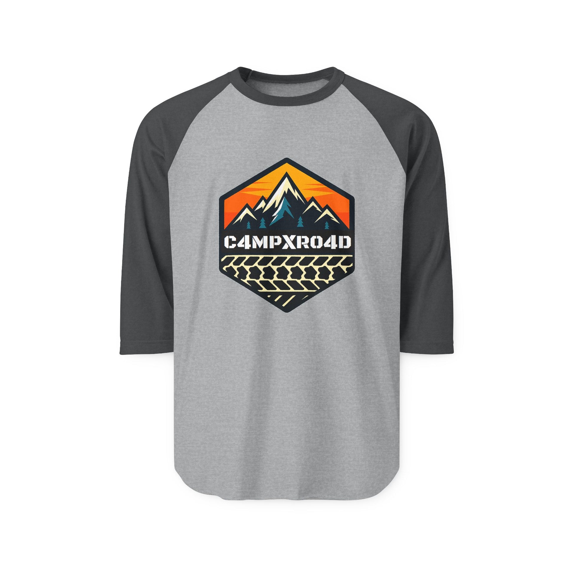 C4MPXRO4D Hexa Shield Camper Badge Raglan Shirt | Gaming Code Baseball Tee