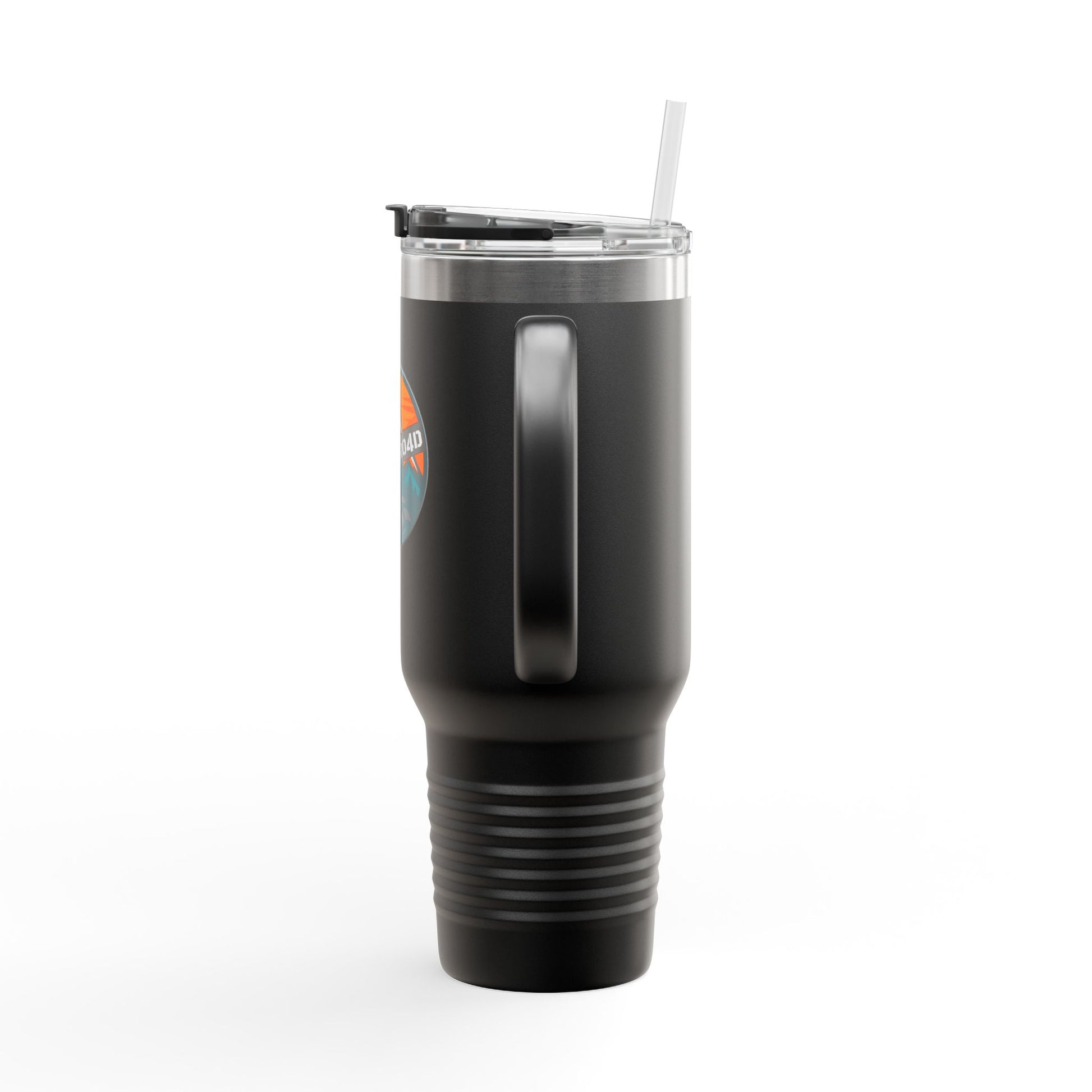 C4MPXRO4D Rounded Shield Camper Badge 40oz Travel Mug | Insulated Tumbler with Straw