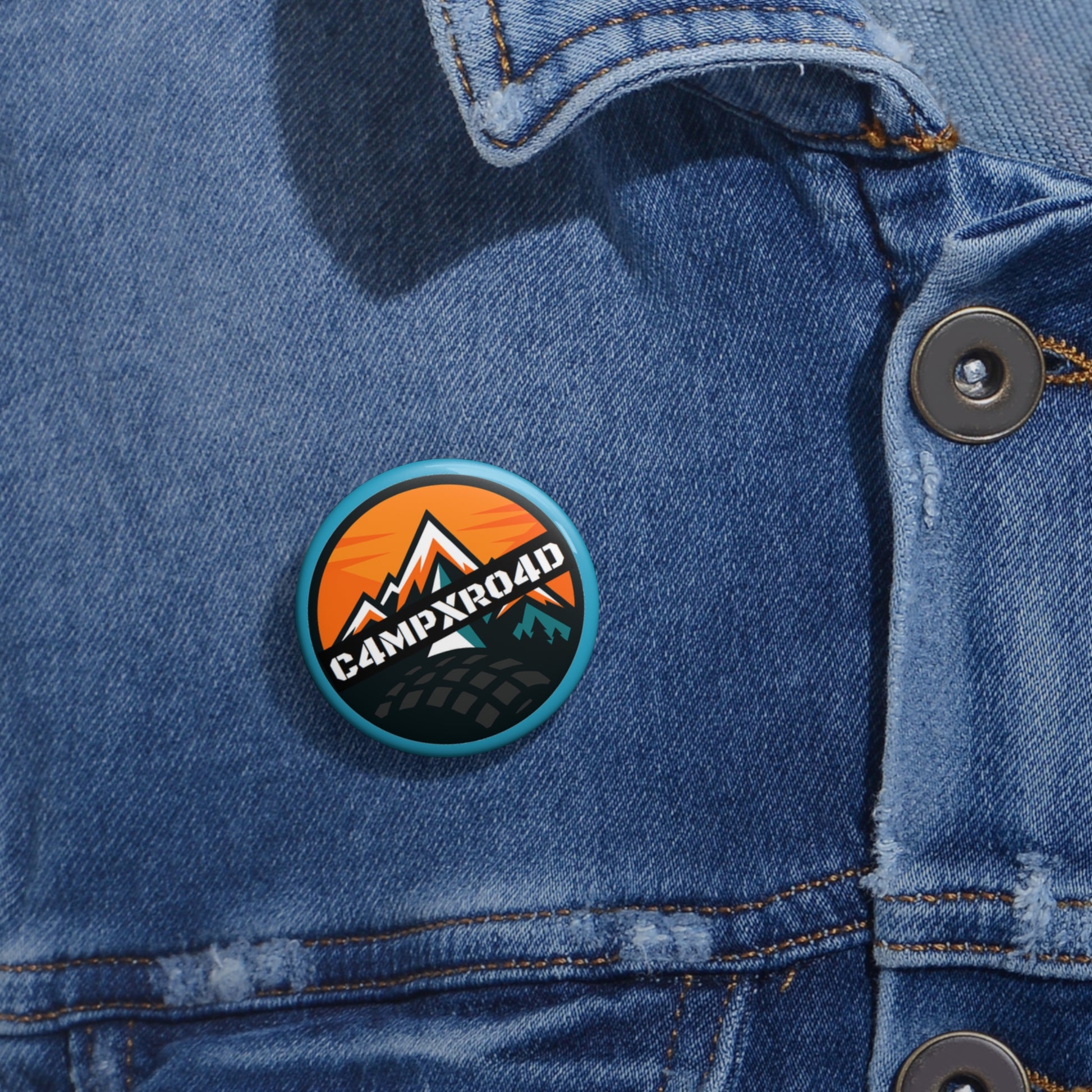 C4MPXRO4D Rounded Shield Camper Badge Pin Button | Custom Round Badge, Black Logo Button
