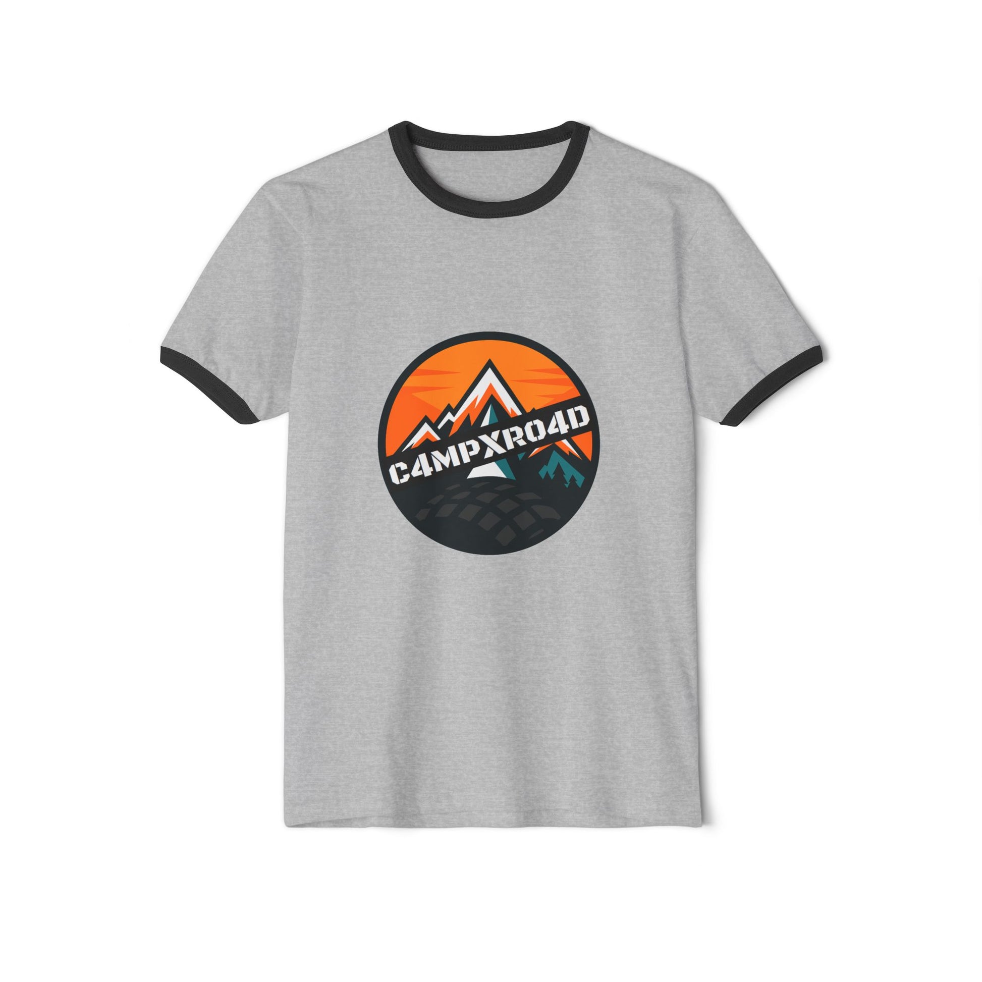 C4MPXRO4D Rounded Shield Camper Badge T-Shirt | ringer style