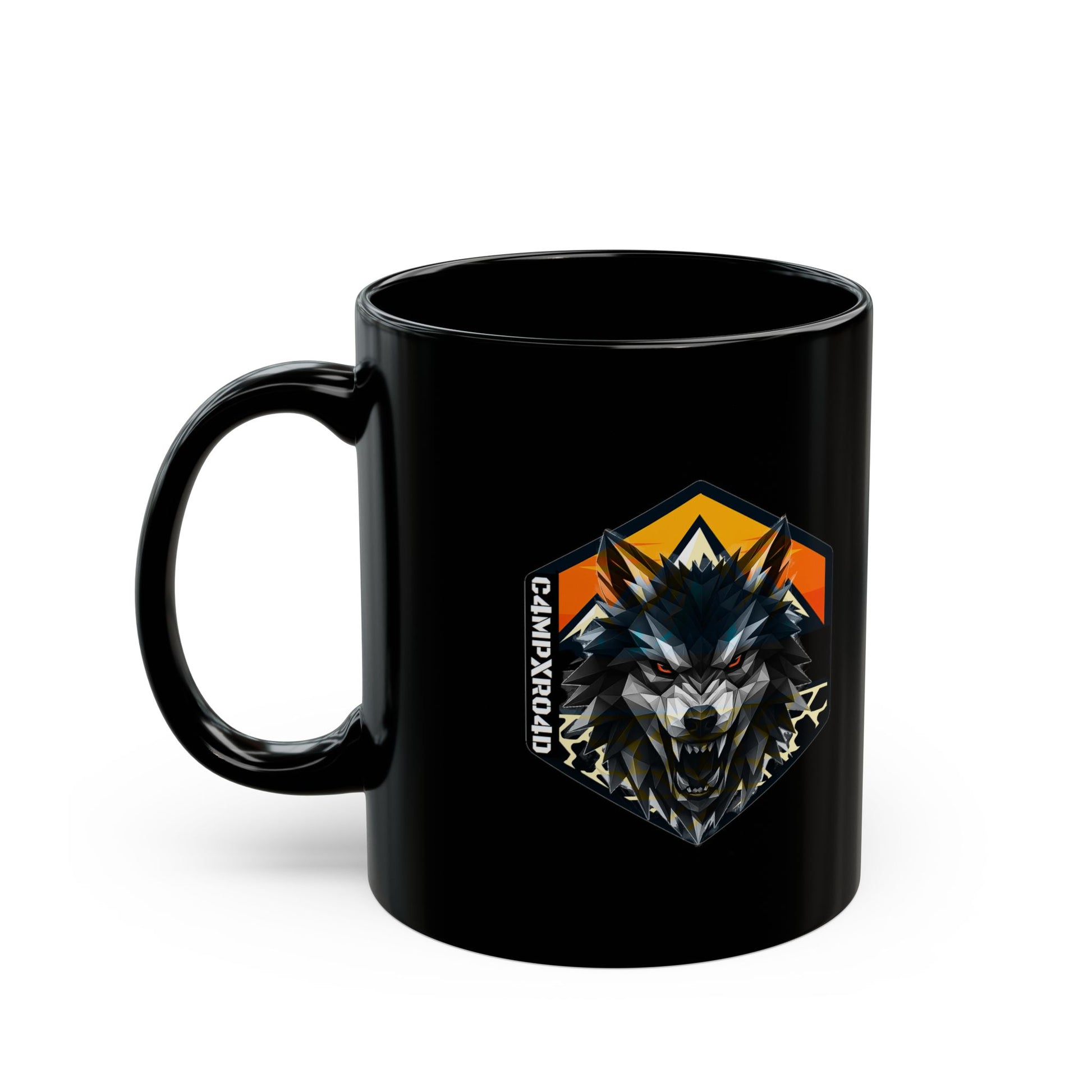 C4MPXRO4D Wolf Shield Camper Badge Mug | Black Ceramic Coffee Mug